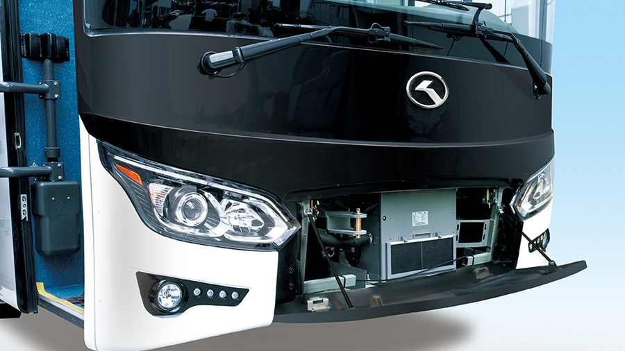 | 车身主要配置 | 国产六档变速箱;前轮爆胎应急装置;WABCO ABS+ESC;六气囊空气悬架;CAN总线;全承载车身;;铝合金手动外摆行李舱门;豪华行李架;高级耐磨地板革;真皮减震司机椅(三点式安全带);龙翼车载电脑终端专业版;道路自动限速控制系统。 |