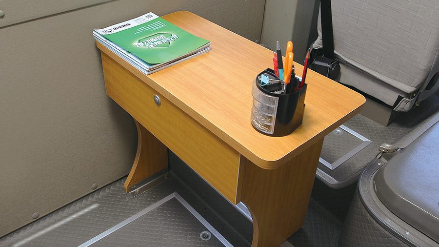 | 车身主要配置 | 司机门,气动折叠乘客门,靠背可调前后可滑移司机椅,空调(选项装置),MP3播放器,后围对开门(可取消),书架/电脑桌/圆架/门禁(可选装) |