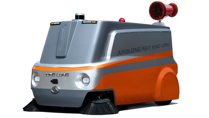 金龙阿波龙GOVO,采用金龙客车成熟的无人驾驶线控底盘平台,具备全自动驾驶能力,实现清扫消毒二合一,适用于园区、景区、校园、机场和动车站等人群聚集场所,可定时错峰出发,消杀完毕自动返回,是保障有序复工的消杀神剑。